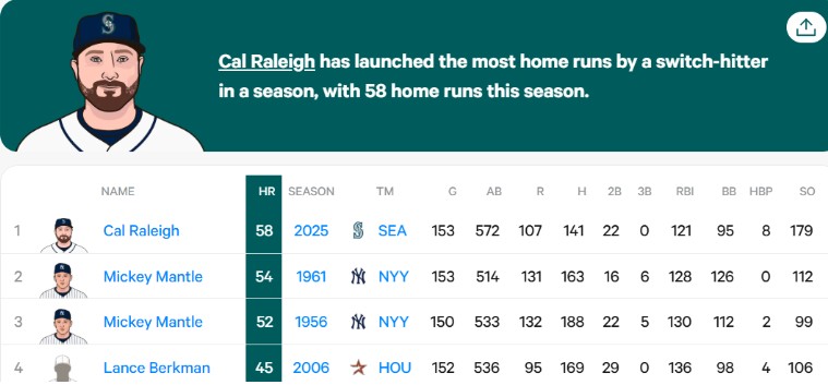 MLB Switch Hitter Single Season HR Record (Stat Muse)