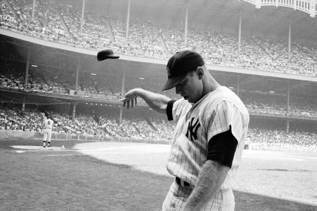 Mickey Mantle tosses away his helmet in disgust, Yankee Stadium, June 1965 - https://www.reddit.com/r/baseball/comments/1gtj568/33yearold_mickey_mantlehis_electrifying_talents/