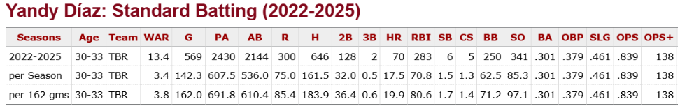 Rays Yandy Diaz Hitting 2022-2025 (Baseball Reference)